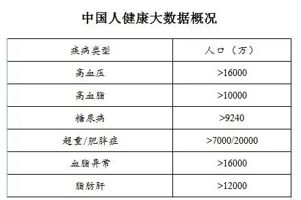 中国医疗大数据现状:压在百姓身上的3座健康大山在总人口为13亿多的中国人中,中国高血压人口有1.6~1.7亿人,高血脂的有将1亿多人,糖尿病患者达到9240万人,超重或者肥胖症7000万~2亿人,血脂异常的1.6亿人,脂肪肝患者约1.2亿人。有研究数据显示:平均每30秒就有一个人罹患癌症,平均每30秒就有一个人罹患糖尿病,平均每30秒,至少有一个人死于心脑血管疾病。